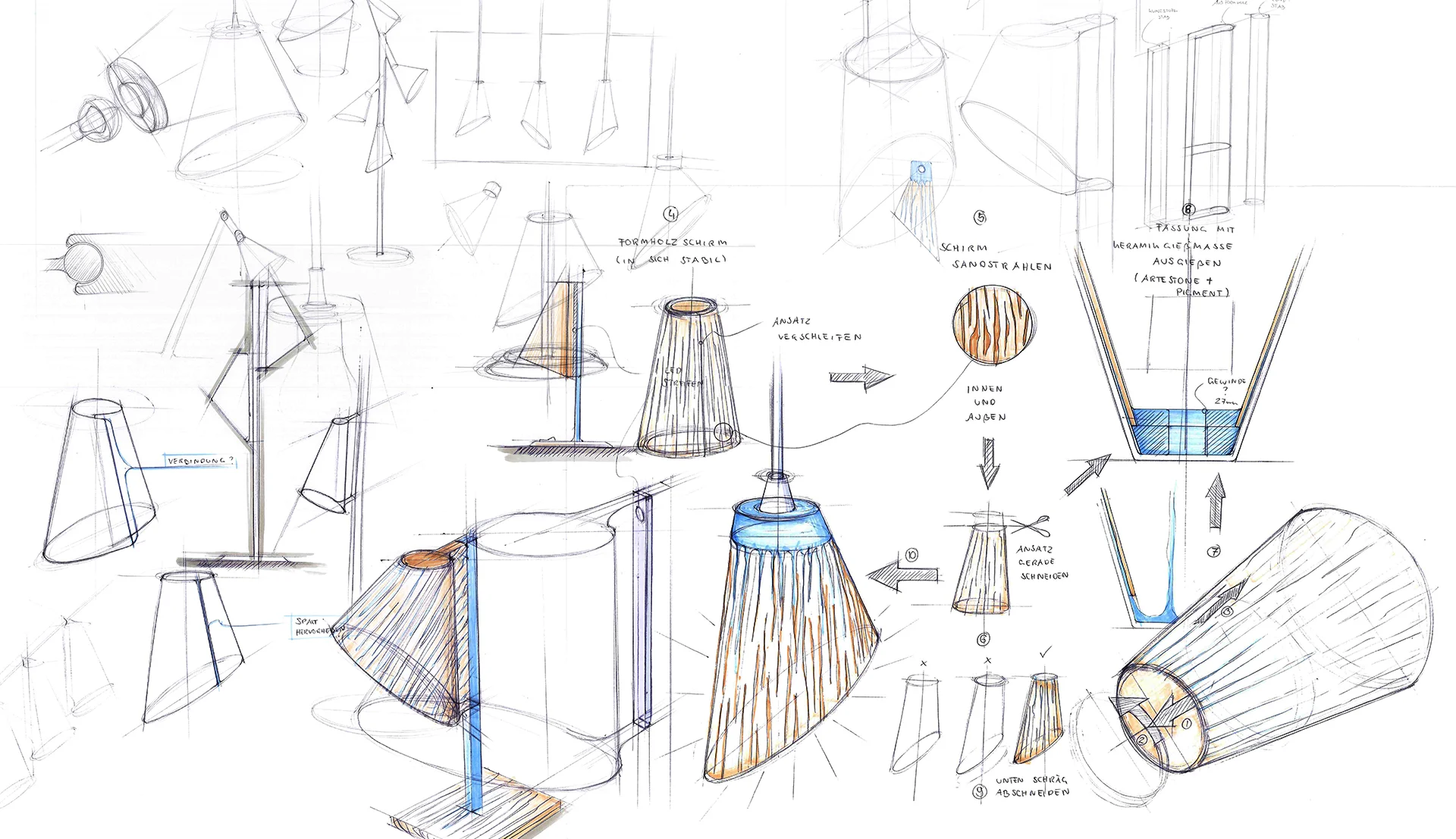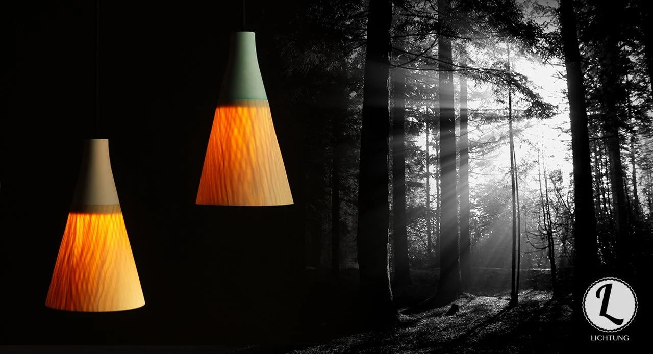 ‘Lichtung’ is a pendant light out of wood veneer and mold ceramic. It’s made out of natural materials. The light shines trough the vein of the wood and creates a wonderful warm light.